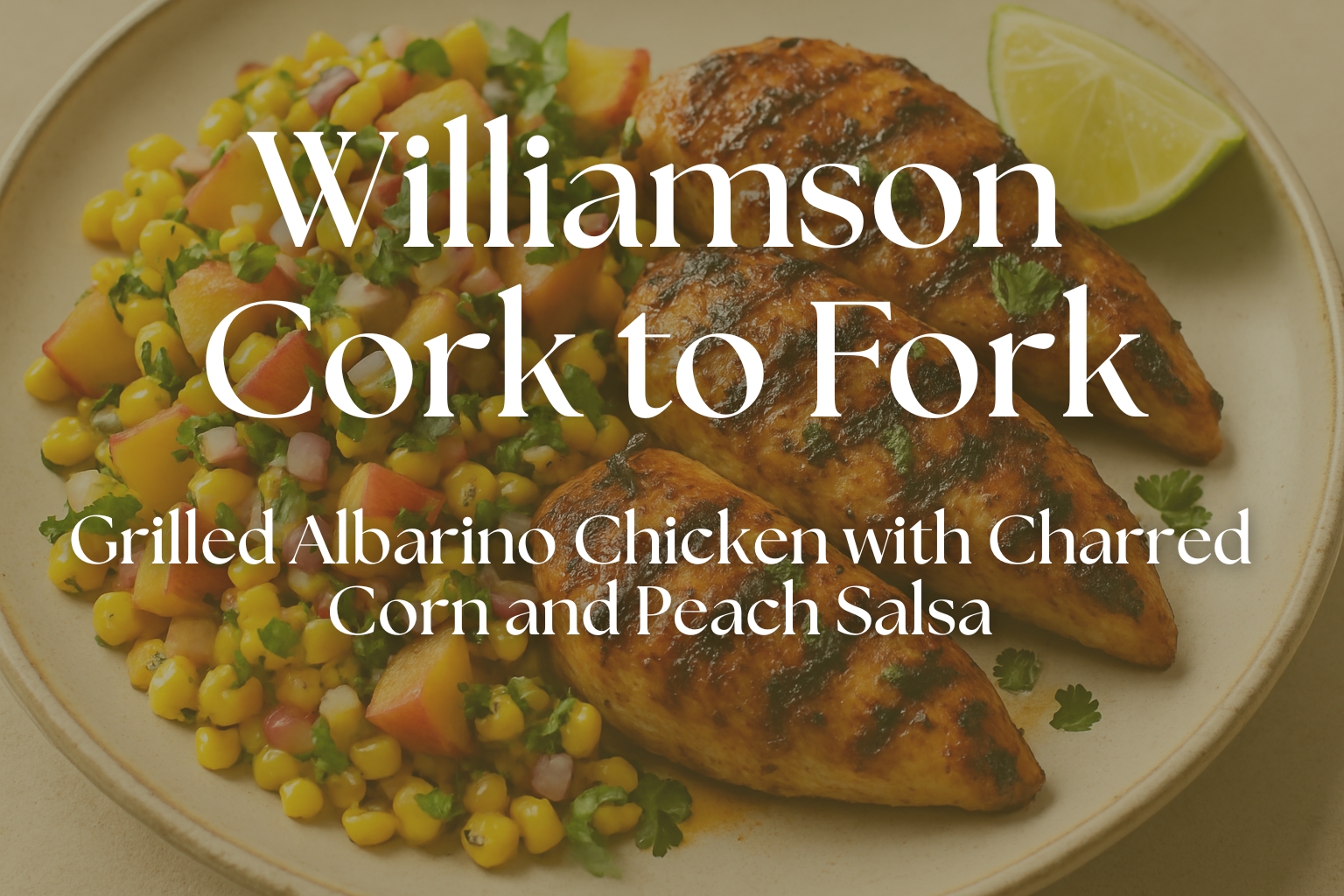 Serve the sliced chicken over a bed of the charred corn and peach salsa. Garnish with extra herbs and maybe a squeeze of fresh lime. Pair with a chilled glass of Williamson Albariño for the full experience.